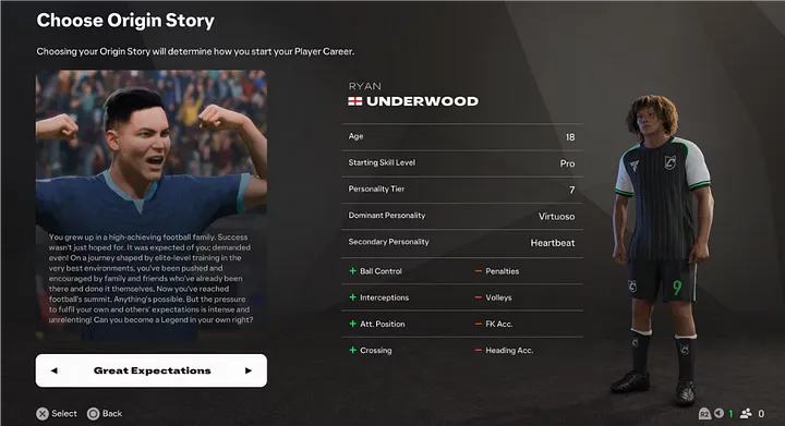 For those who prefer a more traditional route, the Clean Slate option lets you start as a young player with no pre-determined background, allowing you to develop your player from scratch.