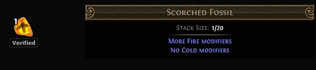 The Scorched Fossil is used to enhance fire-related modifiers on an item, while completely excluding any cold-based modifiers.
