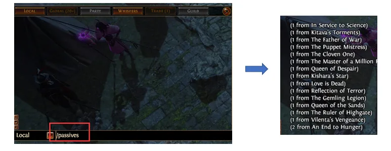 Use /passives Command: Use the command /passives in the in-game chat to check which passive points you have earned on your current character.