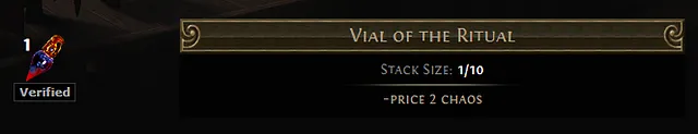 The price of PoE Vial of the Ritual is about 2 Chaos Orb.
